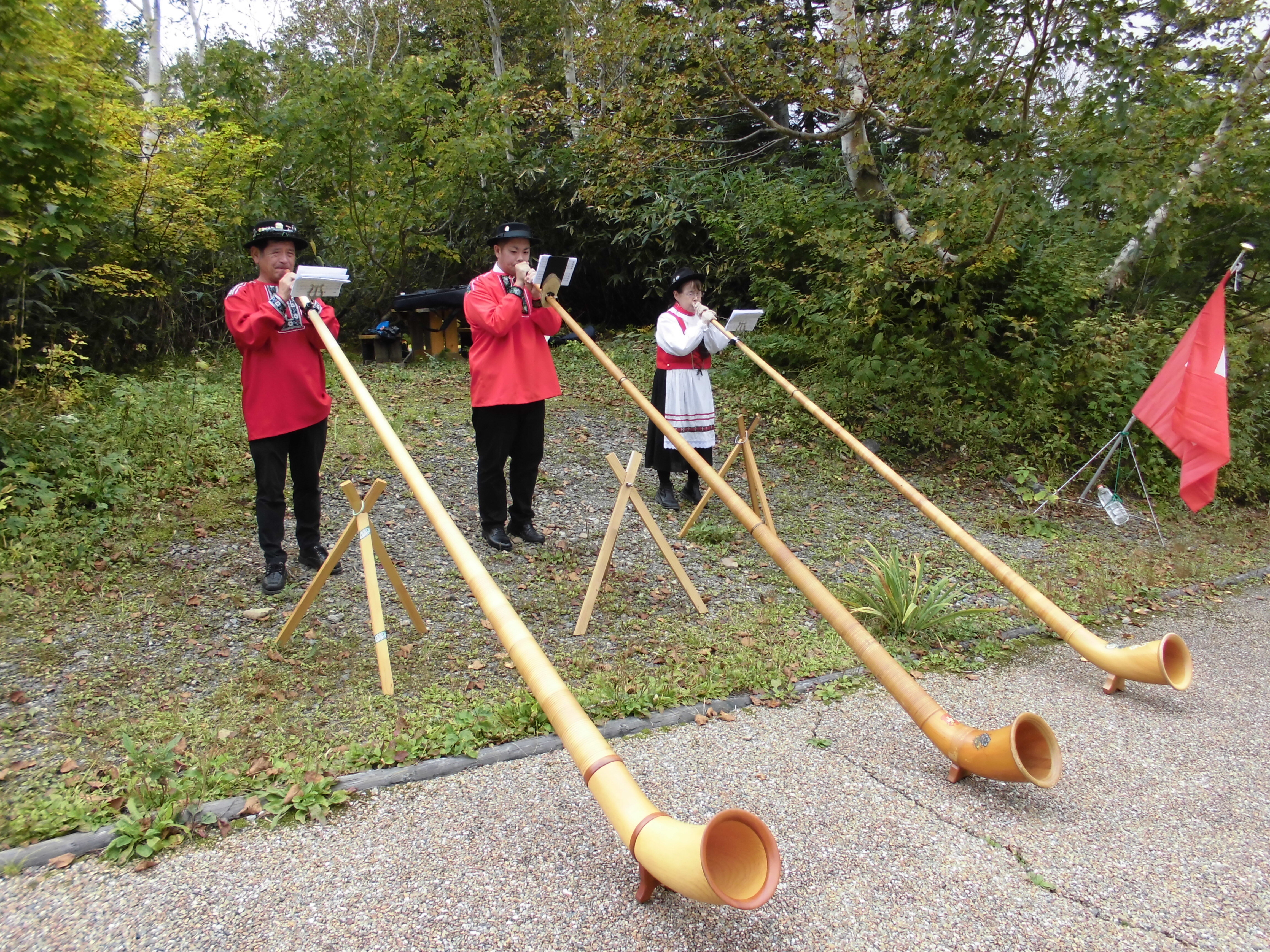 栂池自然園入り口では「アルプホルン」演奏が行われました